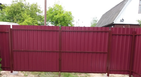 При изготовлении заборов используется профлист марок С8 и С20 толщиной 0,4-05 мм